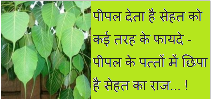 आज हम आपको यहाँ पे बताएँगे.. पीपल के पत्तों के सेहत लाभ के बारे में ! शायद आप नहीं जानते होंगे लेकिन पीपल के पत्तो में सेहत के कई लाभ छिपे हुए है। वैसे आप लोग जानते ही होंगे.. पीपल का पेड़ ऑक्सीजन का एक महत्वपूर्ण स्रोत माना जाता है जो 24 घंटे ऑक्सीजन उत्सर्जित करता है।