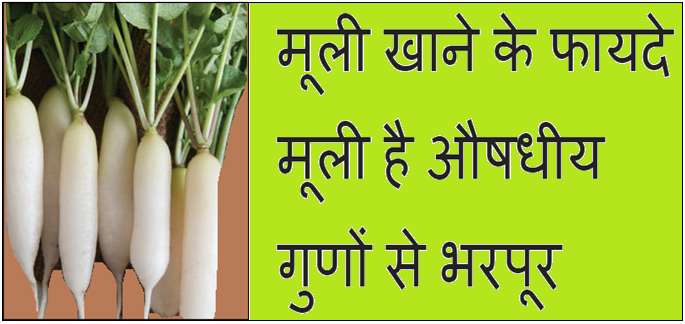 मूली एक सब्जी है, जो गांजर के सामान आकार की होती है। वह दिखने में सफ़ेद रंग की होती है। कई लोग इस सब्जी बड़े ही शौक से खाते है। मूली खाने में भी स्वादिस्ट से भरपूर होती है और पोषक तत्वों से भी भरपर होती है। कई लोग इस सब्जी को शौक से सेवन करते है लेकिन वोह नहीं जानते की मूली भी औषधी के गुणों से भरपूर होती है।