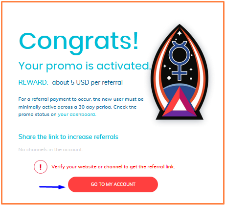 >> जैसे ही आप Activate Promo बटन पे क्लिक करते है तब फिर से एक पेज खुलता है, उसमे आपको Congrats! Your promo is activated ऐसा मैसेज मिलता है, उसके बाद वहां पे आपको Go to my Account बटन पे क्लिक करना है।